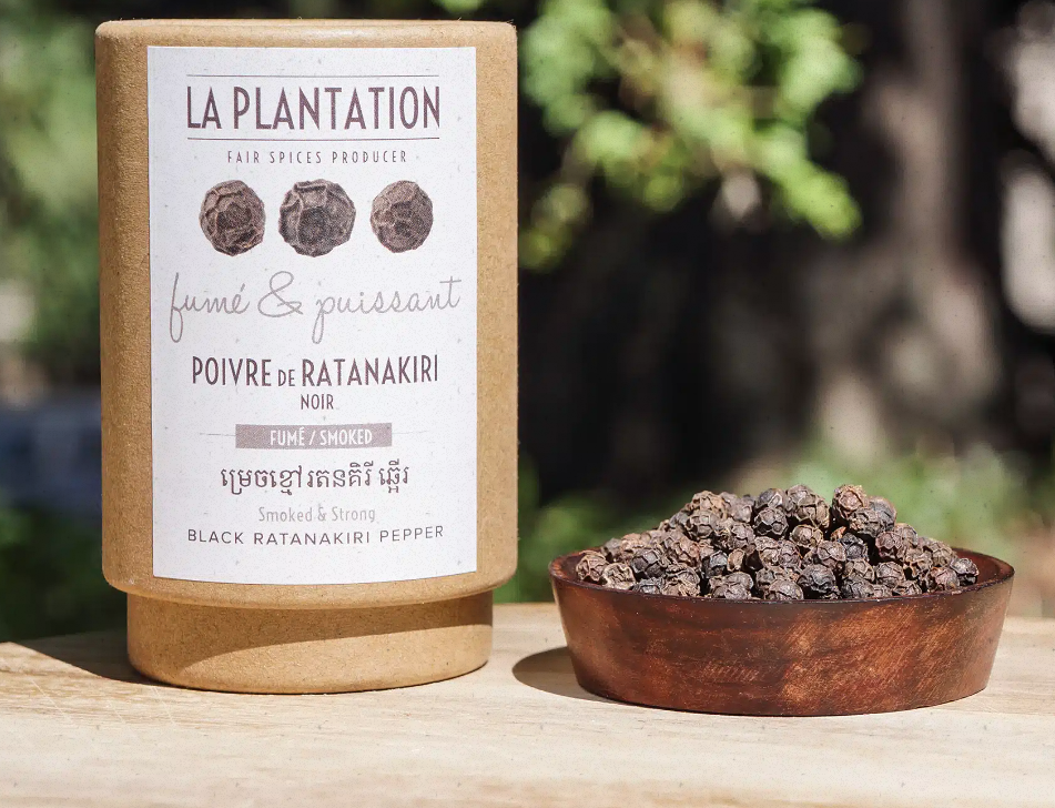 A rare artisanal spice! Smoked Black Ratanakiri Pepper is a rare spice harvested in the mountainous region of Ratanakiri, in northeastern Cambodia. This exceptional pepper is cold-smoked using a traditional, low-temperature method.