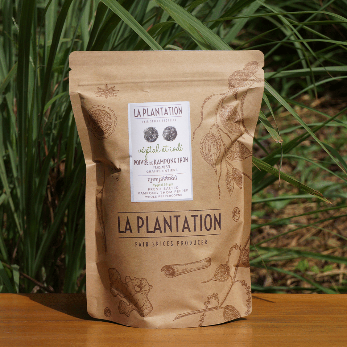The fresh Kampong Thom pepper is fermented in salt immediately after harvest. The sea salt used comes from Kampot and contains no additives or preservatives. A short fermentation period allows the pepper’s full aroma to develop naturally.